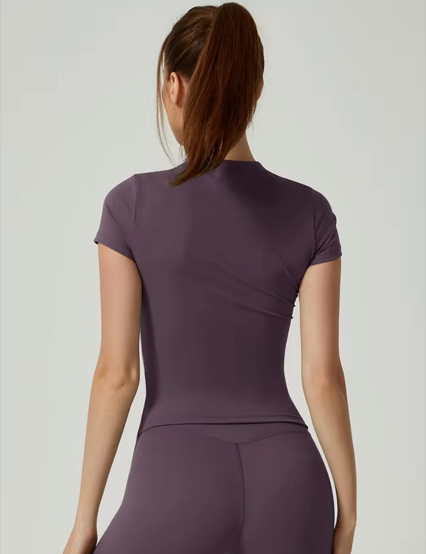 Expertly crafted with slinky material, our fitted short sleeve t-shirt provides ultimate comfort and stretch for your daily activities. Say goodbye to restrictive clothing and hello to a breathable and flexible fit. Upgrade your wardrobe with this must-have piece.